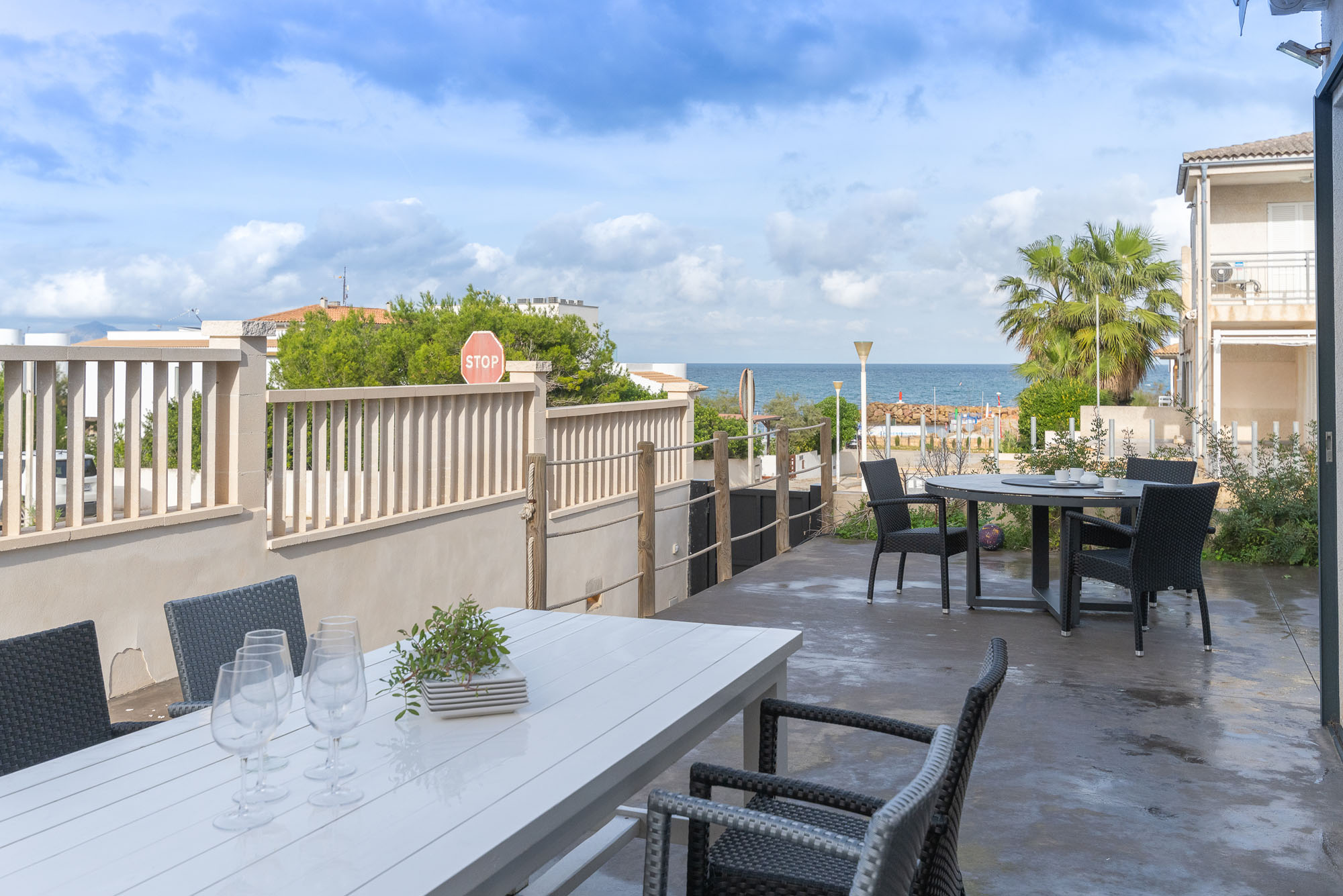 Cada uno de los dormitorios en la planta superior tiene su propia terraza privada con vistas al mar, asegurando que cada ocupante pueda disfrutar de las espectaculares vistas desde la comodidad de su habitación.